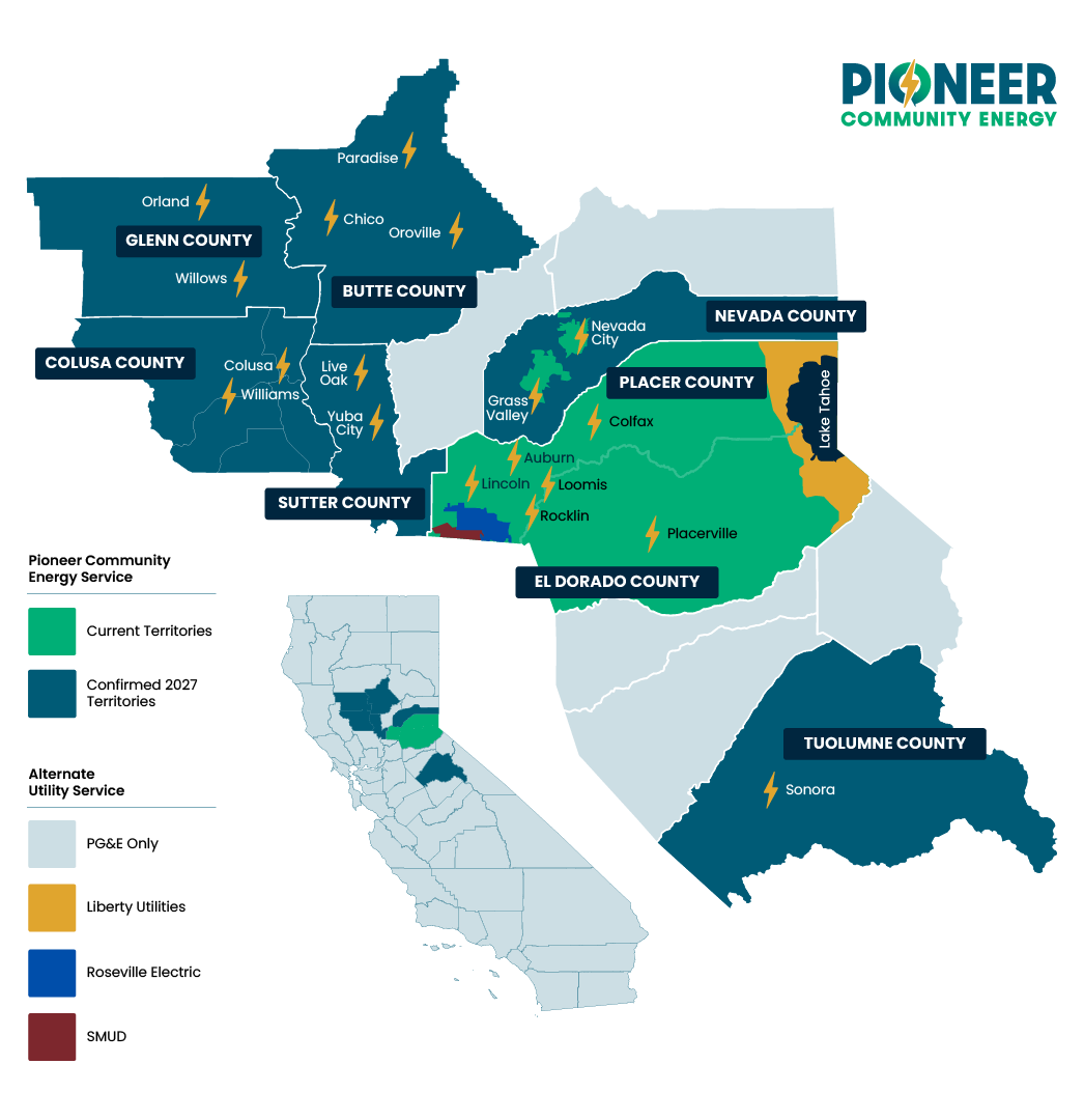 in most of the communities in unincorporated Placer and El Dorado counties, the Town of Loomis, and the cities of Auburn, Colfax, Grass Valley, Lincoln, Nevada City, Placerville and Rocklin.